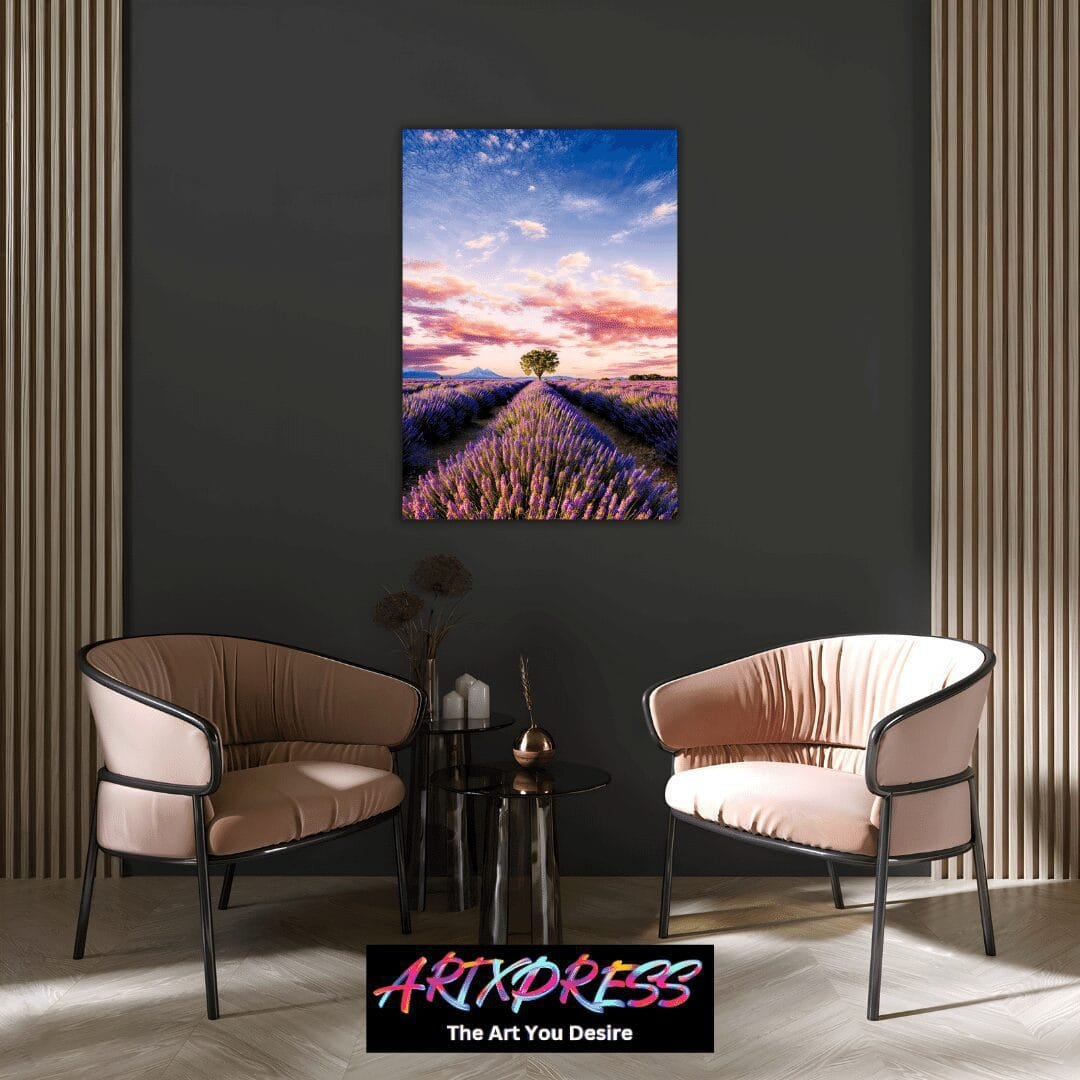 Lavender Field Sunset | Metal Poster