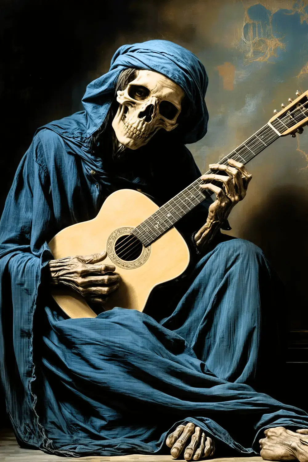 Seated Playing His Guitar | Metal Poster
